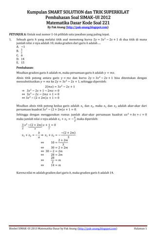 Pembahasan Soal Simak Ui 2012 Matematika Dasar Kode 221